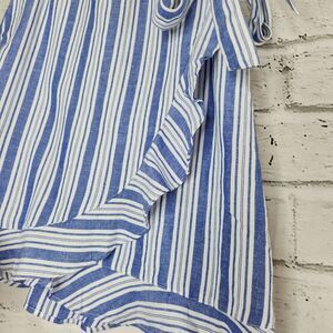 Loft Wrap Tie Knee Length Skirt Rayon Linen Blue White Striped Women's Size 8