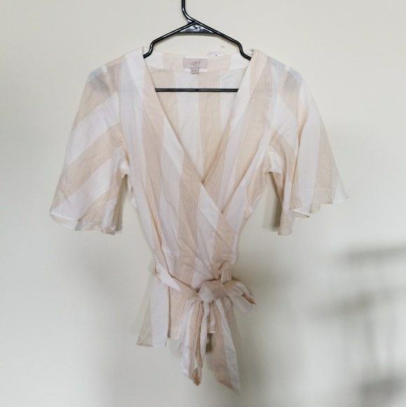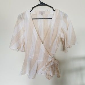 NWT Loft Outlet stripe wrap top. Size XS. Pull through waist ties. Hits at hip.