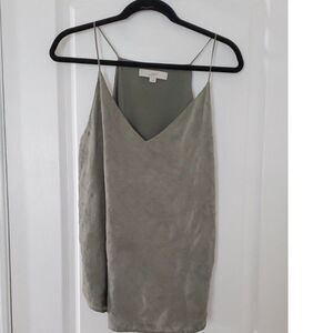 Loft XL Spaghetti Strapped Blouse, Lined, Light Green, flora pattern.