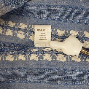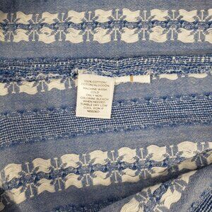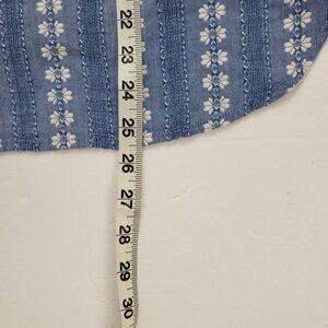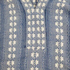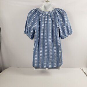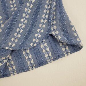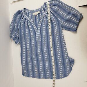 Loft XXS Blue White Embroidery Cotton Women Spring Blouse Top Short Sleeve