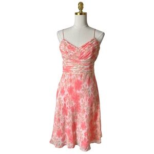 Loft Y2K Pink Floral Spaghetti Straps 100% Silk Babydoll Dress Size 0 Fairy