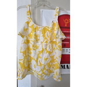 Loft Yellow White Floral Ruffle Tank Top Women's Size Medium. In good condition, please see photos.