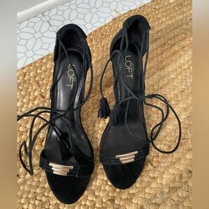 Loft lace-up ankle heels. Black velvet with gold detail. Tassels on the ankle straps. Size 8