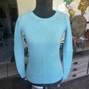 Loft basket weave sweater, size XS. Beautiful blueish/green color, in excellent condition. 53% cotton, 40% rayon, 7% nylon.