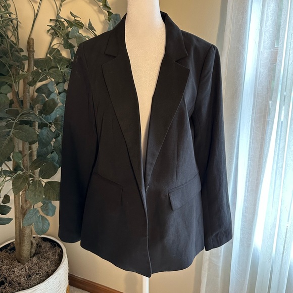 This NWT black blazer from Loft has one button in front and flap pockets. New with tags!