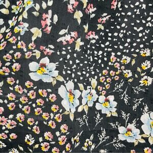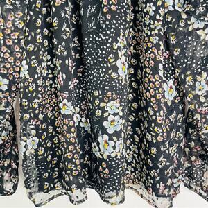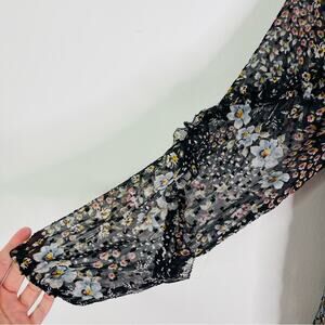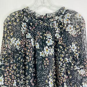 Loft black grey pink floral ruffle chiffon cottagecore boho top medium