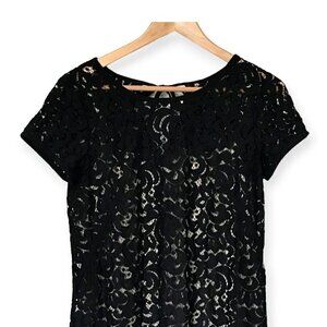 Ann Taylor Loft black lace mini dress with nude underlay