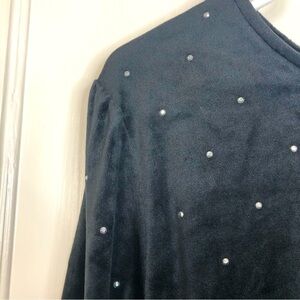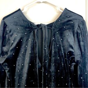 Loft black velvet long sleeve rhinestone bead dress tie at back neck size large