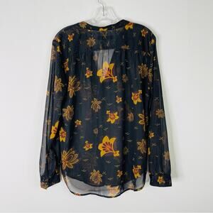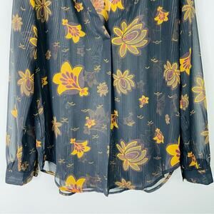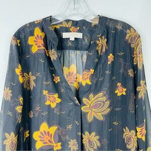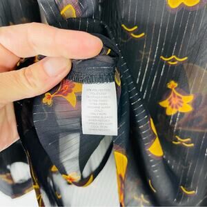 Loft black yellow floral stripe metallic semi sheer popover top medium