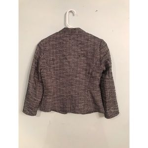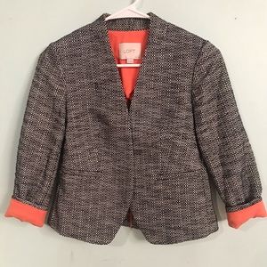 Loft black and white blazer with orange accents. Exterior- 99% cotton 1% spandex. Lining- 100% polyester. Great condition.