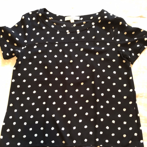 White and black LOFT shirt. Loose fit, short sleeved, fun pattern.