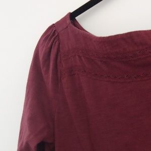 Three quarter sleeve Loft blouse with subtle, flattering embellishment across neckline. Rouched sleeves at the shoulder.
