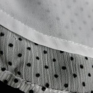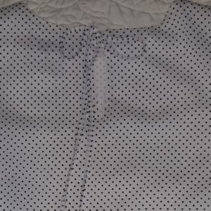 Like new adorable dotted swiss blouse with tie neck and gathered sleeves. Blouse is lined with elasticized ruffle on sleeve hem. Perfect for work attire. Excellent condition. Worn once.