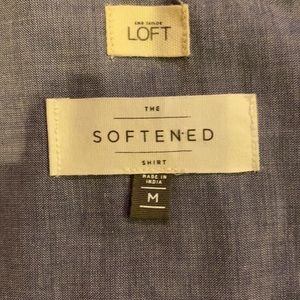 Loft blouse, chambray & white, beautiful detail, softened material, size Medium