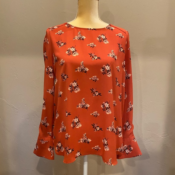Loft blouse in bright tangerine! Almost new and in perfect condition. Blouson sleeves give this blouse a very feminine look. Button closure on back. Size M
