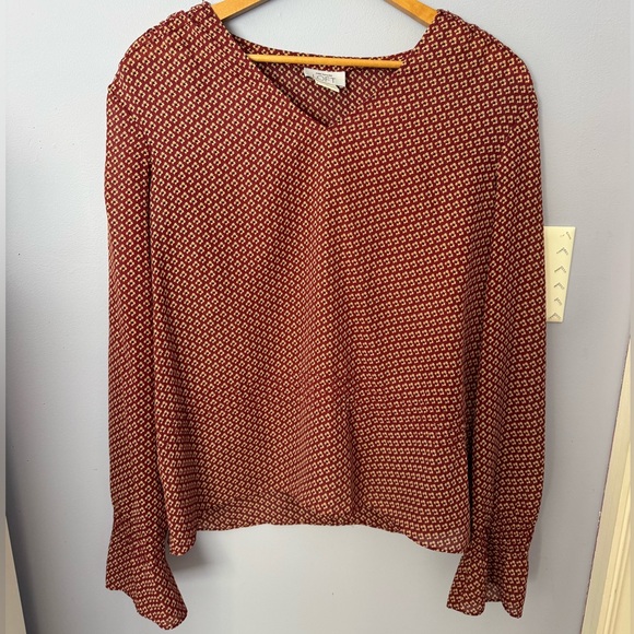 Red patterned long sleeve satin blouse. Women’s size medium from loft 🩵