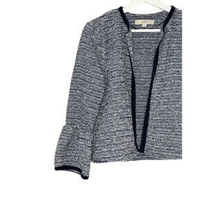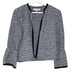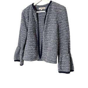 Loft blue bell sleeve blazer small tweed jacket open front quiet luxury workwear