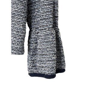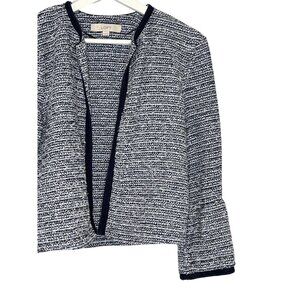 Classic Loft bell-sleeve blazer in navy tweed with subtle cream threading — a refined take on the “quiet luxury” trend. Cropped open-front silhouette with flared sleeves adds polish to any look. Soft texture, easy structure, and all-day comfort. Excellent pre-owned condition.