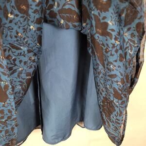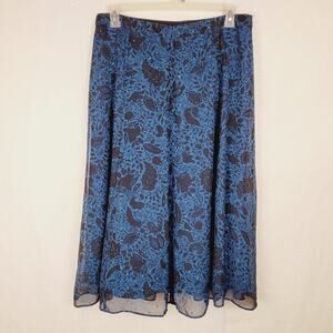 Loft blue floral sheer iridescent flare midi skirt size 12 fairy goth retro boho