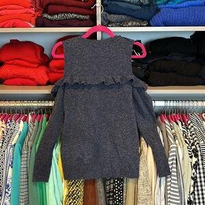 Loft bluish gray cold shoulder long sleeve ruffled crew neck sweater size XS