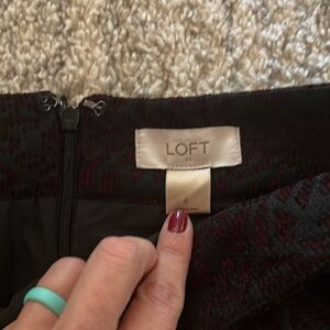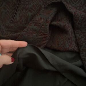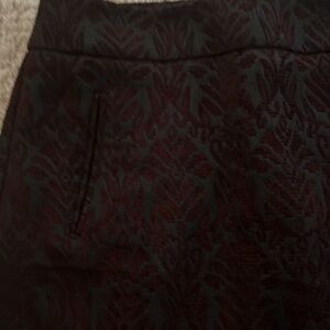 Beautiful pattern in wine and gray. Pockets. Lined (so won’t stick to your legs) comes out on a slight A line. Very flattering and comfortable.