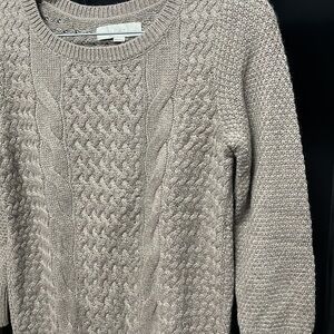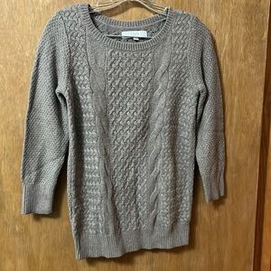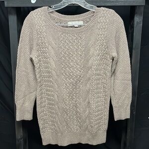 Loft- brown crewneck sweater with 3/4 length sleeves