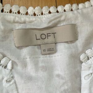 Striped LOFT linen (40%) shorts and white eyelet sleeveless top Shorts size 2 Shirt size xs