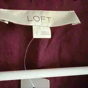 Loft burgundy long sleeve Swiss dot button front with tie shirt size small NWT