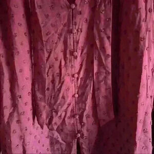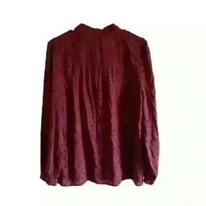 New with tags! Burgundy/maroon long sleeve shirt. Size small. Swiss dot design. Button front. Tie that can be worn loose or tied on the front.