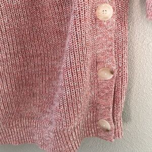 Adorable knit crew neck sweater. 3 buttons down each flank which are functional. Not heavy, but sturdy knit. No pilling, pills or tears.