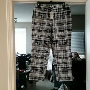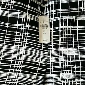 NWT, LOFT, size 6 petite, black And white striped pattern capri pants with zipper on left side and firm fitting stretchy fit.