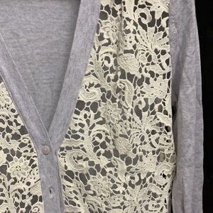Loft cardigan with crochet front on gray sweater