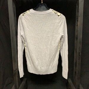 Size small. Gray sweater with crochet front. 60 cotton/ 40% modal. Excellent like new condition.