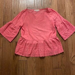 Loft coral eyelet peplum blouse size small