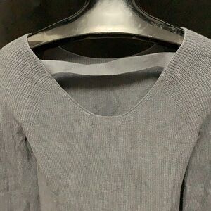 Size small. Dark gray. Crewneck. Open back with bell sleeves. Excellent like new condition.