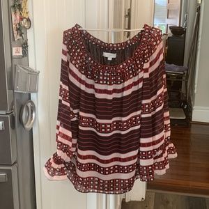 Loft cuffed sleeves detailed off the shoulder blouse. Maybe worn‎ once.