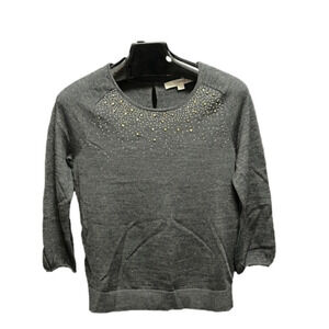 Size xsmall. Dark gray with gemmed neck area. 3/4 length sleeves. Acrylic/wool/polyester blend. Excellent used condition.