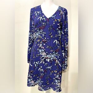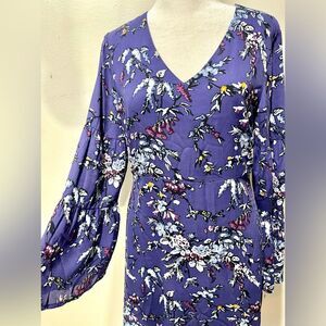 Loft dress floral flare business casual office summer festive purple Women’s 4P