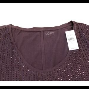 Loft eggplant sequins scoop neck tee. 100% cotton. Approx measurements: bust 20” , length 26”. new with tags