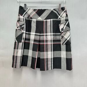 Loft eindowpane plaid pleated front A Line short skirt cargo pockets Size 6