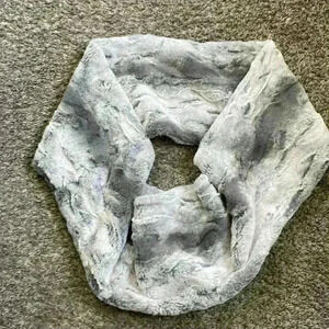 Loft faux fur, minky infinity, gray and white wrap scarf