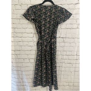 Super cute black with floral print dress Wrap closure , midi style Great for spring Size 00Petite Bin R