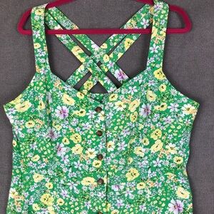 Loft floral sleeveless crossover back buttons midi dress size 16