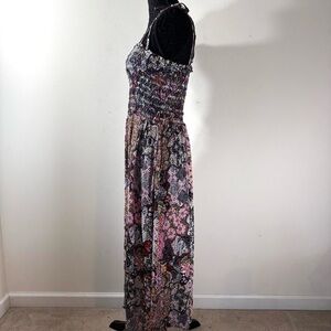 LoFT floral smocked gauzy maxi dress with adjustable tie spaghetti straps