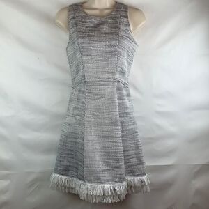 Loft gray and white tweed dress with double fringe hem. Great career dress. Back zipper and fully lined.
