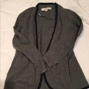Beautiful and soft loft gray cardigan. The trim of the sweater is navy blue. Petite collection. Amazing condition. Make an offer, very negotiable!