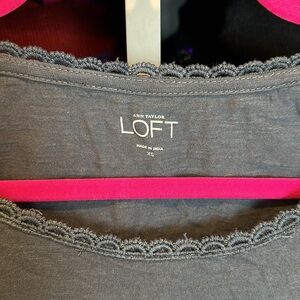 Loft gray embroidered cap sleeve scoop neck top size XS