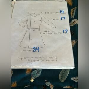Loft green teal feather print button up dress long sleeve v neck size XS