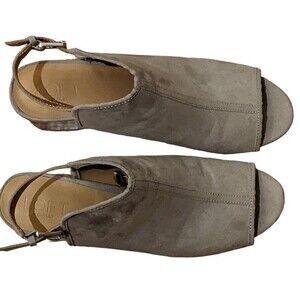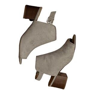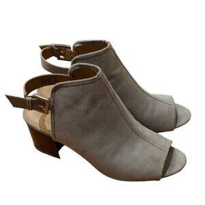 Loft grey open toe bootie faux suede chunky heel adjustable back strap 10M