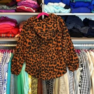Loft hooded copper/black cheetah print quarter zip fuzzy sweater size XS